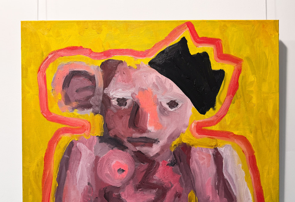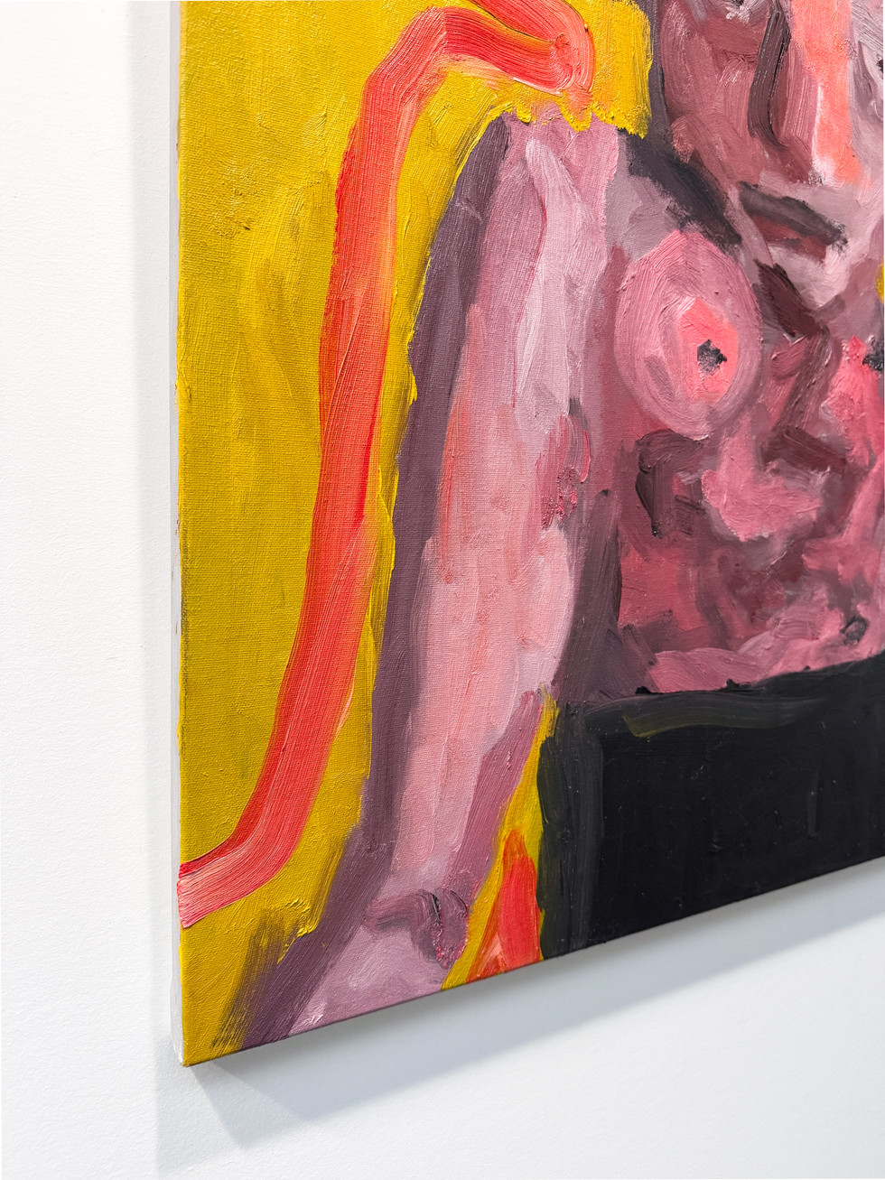 In the painting “Anatomo Pt. 1,” I collage together bodies and genders, using precise lines to emphasize the clarity and definition often demanded by those who target queer and trans individuals, seeking clear boundaries in gender. In “Anatomo Pt. 2,” I replicate the figure from Pt. 1, but this time I paint from a distance using a brush attached to a stick. This physical distancing abstracts the figure, placing me in the position of those who make decisions about queer and trans bodies. Through this process, the original figure—precise and clean—becomes messy and monstrous. Queer and trans individuals are often portrayed as 'others' through body-controlling policies that demonize our existence.