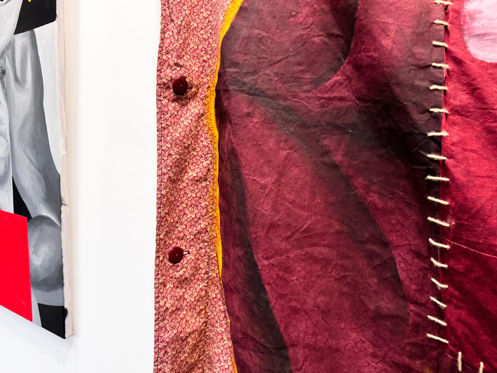 Through collage, painting, textile, and process work I am using multidisciplinary methods to encompass the cruel reality of control and monsterization queer and trans individuals experience in many intersections of life and identity."