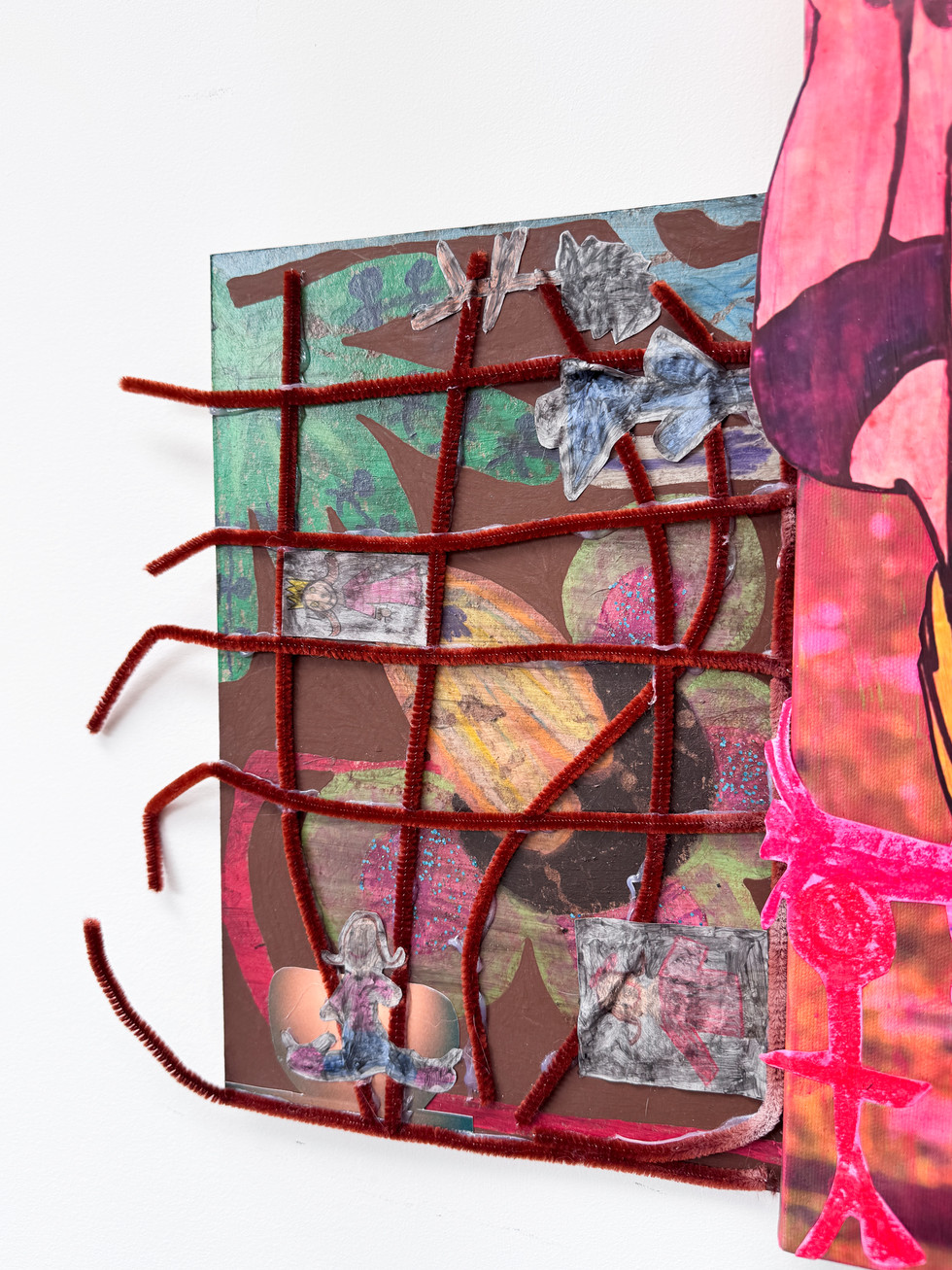 Mixed Media (Paint, pastel, found objects and drawings on canvas)