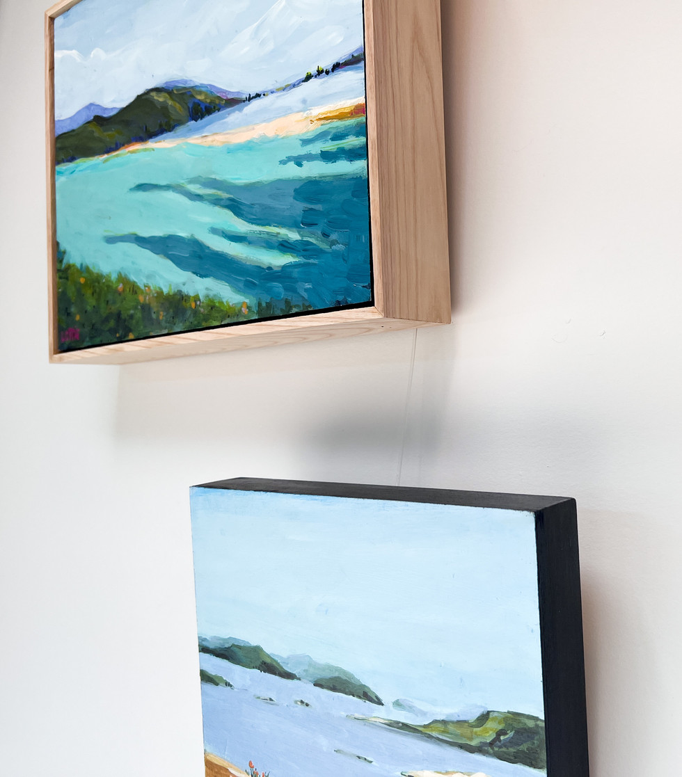 "Growing up by the North Sea in Western Europe has made me feel home whenever I’m around water, and so most of my work features water in one of its many forms. There’s something so breathtakingly powerful about the sea and yet so life-giving to all the creatures that live there, that it never ceases to inspire me. I’m passionate about painting the natural world and love using natural materials whenever possible. I paint on wood and my cabinet-maker husband repurposes discarded hardwood to create their custom frames."